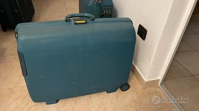 Coppia di valigie rigide samsonite verdi scure.