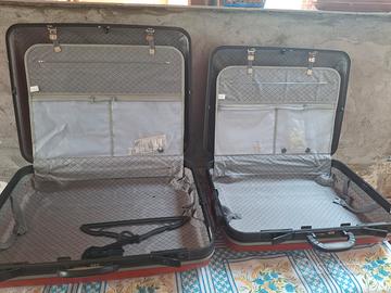 Coppia di valigie rigide con chiusura combinatoria integrata colore rosso.
