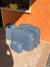 Vendo set completo di valigie Samsonite Epsilon, colore grigio/blu, realizzate in materiale rigido di alta qualità.