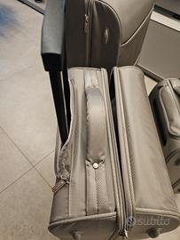 Set valigie Samsonite in tessuto waterproof.Usate due volte, Complete ciascuna di maniglia laterale e piedini.Chiavi di sicurezza. Maniglie telescopiche per traino. Misure: Grande 47*30 h 75, media 40*25 h 65, piccola 20"37 h 50. Vendibili anche singolarmente o in coppia.