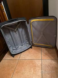 2 Valigie Desley morbide nere: 68 altezza, 44 larghezza, 25 profondità, 4 ruote, maniglia superiore e laterale, espandibile, fodera poliestere, cinghie di compressione, 2 tasche con zip, TSA a combinazione, euro 120. 40 largezza, 53 altezza, 20 profondità, una maniglia, 2 ruote + 2 piedi, 2 tasche con zip, euro 70. Sacca trasporto per formato più grande regalo. Se acquistate insieme euro 160. Non spedisco.