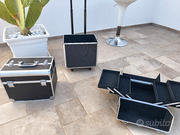 Vendo per inutilizzo: - trolley valigia con due vani separabili e cassetti; - valigia rigida con cassetti.