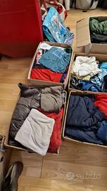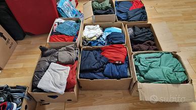 Vari cartoni pieni di vestiti usati di ogni genere Valigie e zaini come da foto Scarpe usate vendo in blocco valuto offerte