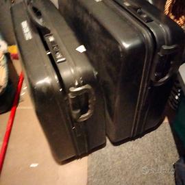 valigie vintage rigide nere prodotte da Samsonite in palstica molto resistente.