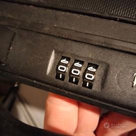 con maniglia per il trasporto , chiusura con combinazione , divisorio interno e appendini in dotazione. Marchio ISO 9002 .