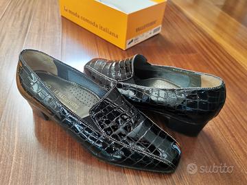 Vendo due paia di scarpe Valleverde, modello mocassino elegante e molto comodo, in vera pelle con finitura effetto cocco lucido. Disponibili in nero e bordeaux scuro, entrambe taglia 40 (come da marcatura in foto). Scarpe in condizioni pari al nuovo e complete di scatola.