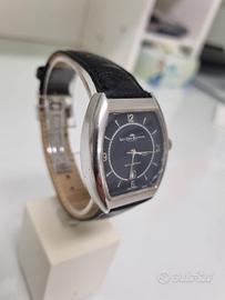 Movimento svizzero a carica automatica perfettamente funzionante. Cinturino in pelle con chiusura deployante originale .