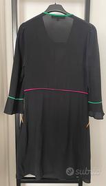 Vanessa Bruno. Abito 100% seta (modello fontine), corto, manica 3/4, con chiusura lampo laterale. Colori: nero + multicolore. Indossato con cura, in ottime condizioni, lieve scolorimento sottoascellare. Taglia 36 francese; XS internazionale. Dimensioni in cm: spalle 34; lunghezza 84.