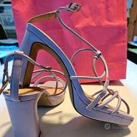 Le scarpe in questione sono un paio di sandali con tacco alto, caratterizzati da un design elegante e moderno. Ecco alcuni dettagli: