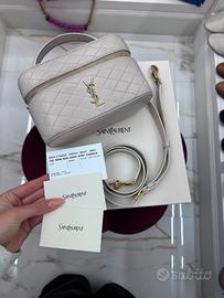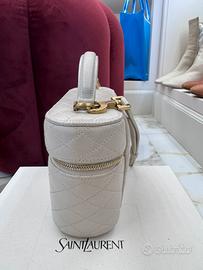 COLORAZIONE : BLANC VINTAGE BORSA VANITY CON DECORAZIONE CASSANDRE E IMPUNTURE TRAPUNTATE A ROMBI. INTERAMENTE FODERATA IN PELLE, LA BORSA PRESENTA UNA TRACOLLA A CATENA REGOLABILE E AMOVIBILE. PREZZO TRATTABILE