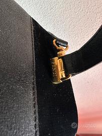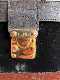 Vanity bag Fendi vintage raffinata e ricercata, perfetta per chi ama accessori di lusso dal gusto retro. Il velluto nero dona un'eleganza senza tempo, mentre i dettagli in pelle e le finiture dorate valorizzano il design strutturato. Ideale sia come beauty case che come mini bag da giorno o da sera, un pezzo iconico che arricchisce qualsiasi collezione.
