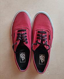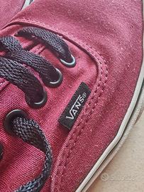 Modello authentic classico Vans, basse in tela, bordeaux con dettagli neri (nelle foto il colore sembra diverso). Taglia 42 EU, perfette per chi indossa il 41.5/42. Condizioni ottime, usate poco. Le vendo lavate e con la scatola originale. Motivo: inutilizzo