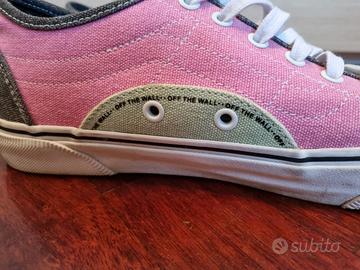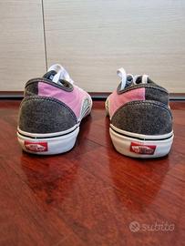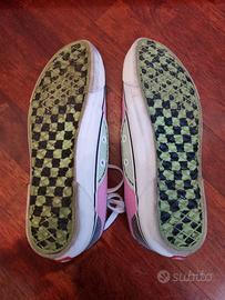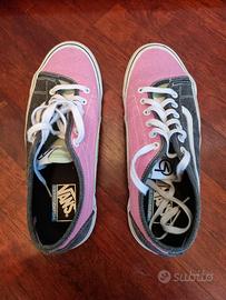 Splendide Vans Bess Ni della serie Throwback, un modello super particolare che riprende i design d’archivio anni '90. 🛹✨ La particolarità ? Sono asimmetriche! Ogni lato ha un colore diverso (rosa, nero effetto denim e dettagli verde pastello) con l’iconica suola a scacchiera (checkerboard) laterale. Sono molto più ricercate e originali delle classiche Old Skool, perfette per non passare inosservati. ;) Dettagli in breve: - Taglia: 42.5 EU. - Codice originale: VN0A4BTHWOY (garanzia di autenticità ). - Condizioni: Ottime, usate pochissimo come si vede dalle foto. - Comfort: Hanno la soletta UltraCush, quindi sono comodissime per camminare tanto. - Stile: Urban / Streetwear / Y2K.