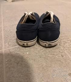 Vendo causa inutilizzo paio di scarpe Vans Authentic di colore blu e bianco. Indossate pochissime volte. In condizioni ancora buone. Taglia US Men 9.5 e US Women 11 (42.5).