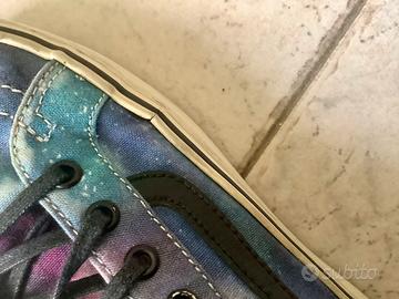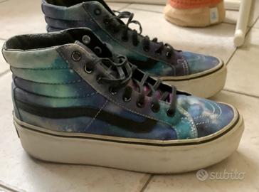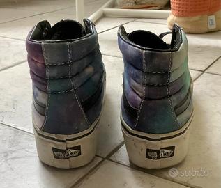 Vans con tema galassia sul viola, platform bianco e stringhe nere