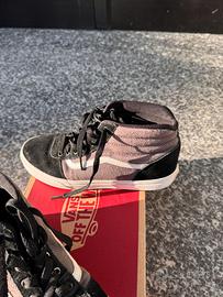 edizione invernale morbida al tatto fuori, la F8 è la declinazione dell'originale scarpa high-top che ha rivoluzionato il mondo dello skateboard dal 1978. Le high-top hanno rivoluzionato il mondo delle sneakers e le Vans Style #F8 sono state in prima linea in questa evoluzione. La robusta tomaia in pelle scamosciata e tela esprime tutto il loro carattere. La struttura? Sono dotate di punta rinforzata, collo imbottito di supporto e originale suola waffle in gomma. Quasi immacolate perchè usate veramente pochissimo per cambio taglia. Sanificate con Ozono, pulite e con scatola. Prezzo poco trattabile. Visibili a Mestre e consegna tra Mestre, Olmo, Martellago, Spinea e Noale . Contatto via whatsapp o via telefono ad orario pasti . Non spedisco.
