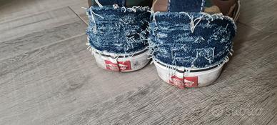 VANS originali modificate dal negozio Mimanera di Riccione con lacci mimetici e finiture camouflage/jeans