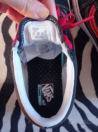 Vans nere con profili e lacci rossi, unisex, comodissime nella camminata grazie alla comfycush. Usate pochissimo come si evince dalla suola. Numero 38 taglia adatta anche a bambini.