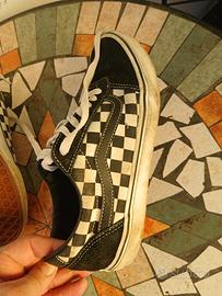 Sneakers Vans originali, modello total black in similpelle con suola alta bianca (platform). Usate ma in buone condizioni. Comode e versatili