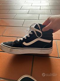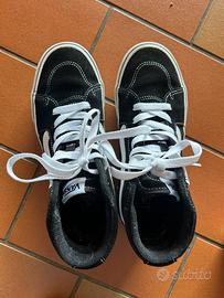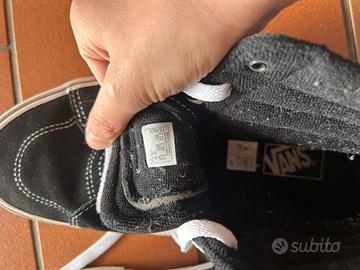 Vans nere scamosciate numero 36 con lacci bianchi, spedisco con scatola originale, comprate a natale ma vendo per inutilizzo, indossate solo 1 volta. Sempre tenute perfettamente nella scatola in un mobile. Tenute maniacalmente perfette nuove.