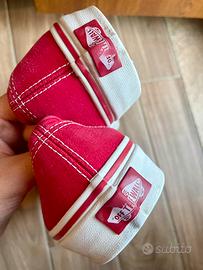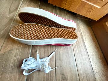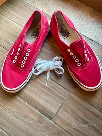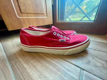 Vans originali taglia 40, come nuove (indossate un paio di volte al massimo e conservate nell'armadio). Logo ben visibile e nessun segno di usura escluso uno sbiadimento sul retro e un piccolo graffio sulla gomma.