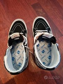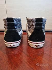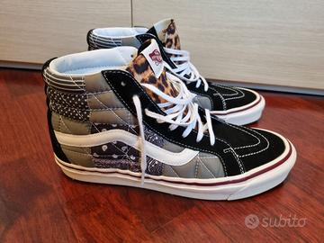 Vendo Vans Sk8-Hi 38 DX della serie Anaheim Factory, un modello super particolare che riprende i design d’archivio della fabbrica originale in California. La particolarità? È un’edizione speciale patchwork che unisce materiali e stampe diverse (leopardato, bandana e tessuto trapuntato) in un unico design audace. Sono molto più ricercate e originali delle classiche Sk8-Hi, perfette per non passare inosservati. ;) Dettagli in breve: - Taglia: 43 EU. - Materiali: Mix di pelle scamosciata (Suede) nera, tela e inserti trapuntati. - Condizioni: Ottime, usate con cura come si vede dalle foto. - Stile: Urban / Streetwear / Limited Edition.