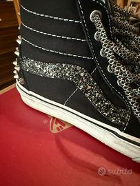 Vans SK8Hi taglia 37 personalizzate ‘Il Maltese Lab’ con borchie sul retro e brillantini neri sul baffo