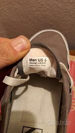 Paio scarpe marca Vans eu 37,5 us 6,5 colore grigio tortora authentic, indossate 2 volte ed in eccellenti condizioni, esterno cm 25, soletta interna cm 22, in perfetto stato, con scatola originale, nessun difetto, venditore privato, nessuna garanzia, non si accettano resi, spedizione veloce con imballo accurato, grazie.
