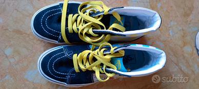 Vans rende omaggio alla famiglia più amata d'America: immersi nel mondo dei Simpson ! Parte di una nuovissima collezione di scarpe, abbigliamento e accessori, le The Simpsons x Vans Sk8-Hi combinano il leggendario profilo high-top stringato di Vans con due ritratti della famiglia Simpson: uno rappresenta la prima apparizione dei personaggi nel 1987 e l'altro li raffigura oggi. Le The Simpsons x Vans Sk8-Hi presentano inoltre pannelli checkerboard multicolori, punta rinforzata resistente all'usura, collo imbottito per supporto e flessibilità, e l'originale suola waffle in gomma.