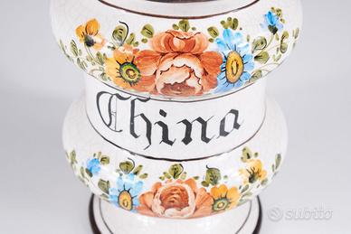 Vaso da farmacia in ceramica di Bassano, Italia anni ’50, con iscrizione “China”, termine usato storicamente per indicare preparati a base di corteccia di china, impiegati nella farmacopea tradizionale.