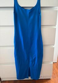 Vendo vestito Zara di colore blu acceso, semplice ed elegante. La lunghezza arriva al ginocchio e la vestibilità è taglia S/M. È un modello smanicato con scollo rotondo, perfetto sia per il giorno che per la sera grazie alla sua linea versatile e femminile. In ottime condizioni, usato pochissimo.