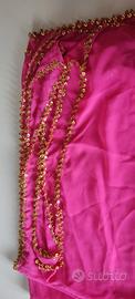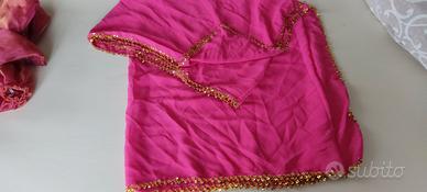 Velo in organza rosa acceso, con pagliet dorate nel bordo, utilizzato solo una volta. Sarà 2m X 1.5m grossomodo. Per altro sulla danza del ventre, ho altri oggetti in vendita.