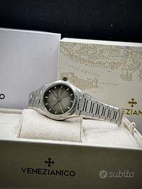 Le incisioni sulla cassa e sulla lunetta richiamano i motivi geometrici dei mosaici bizantini, mentre il quadrante antracite in ottone smaltato, con lavorazione soleil e raffinata sfumatura fumé, crea un gioco di luce profondo ed elegante. Un orologio dal carattere deciso ma armonioso, perfetto per chi cerca qualcosa di diverso dal solito.