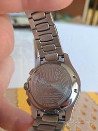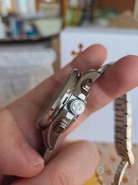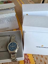 vendo Veneziani Bucintoro 40 mm prima serie numerata, con quadrante blu, in condizioni eccellenti e completo di full set originale. si tratta della prima generazione del bucintoro, oggi sempre più rara da trovare sul mercato, soprattutto in questa configurazione. Caratteristiche principali - Modello: Bucintoro 40 mm - Prima Serie (edizione numerata) - Quadrante: Blu soleil - Movimento: Seiko NE86A - cronografo automatico con ruota a colonne e frizione verticale - Cassa: Acciaio 40mm - Vetro: Zaffiro - Bracciale: Canova originale - Condizioni: eccellenti, usato pochissimo - set completo: scatola, controscatola, documentazione originale La prima serie del Bucintoro è molto ricercata dagli appassionati per il suo design più pulito e per la sua presenza del movimento NE86A, uno dei migliori cronografi automatici nella sua fascia. la versione blu, numerata e full set, è particolarmente difficile da reperire. l'orologio è in condizioni eccellenti: vetro perfetto, cassa e bracciale con minimi segni d'uso. funzionamento impeccabile, cronografo fluido e reset istantaneo come previsto dal NE86A non Ho urgenza di vendere: il prezzo è in linea con la rarità del modello e con le sue condizioni. valuto proposte sensate e scambi, ma non rispondo a offerte e realistiche.