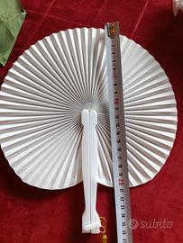 Set di 30 ventagli bianchi in plastica e carta con nappine color oro. Avanzate da anniversario di matrimonio. Perfetti, mai usati. no spedizione