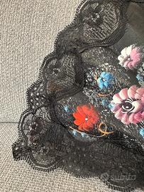 Mai utilizzato, sia il pizzo che il ressuto sono intatti e consistenti come un oggetto non utilizzato. Dipinto a mano con motivi floreali.