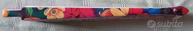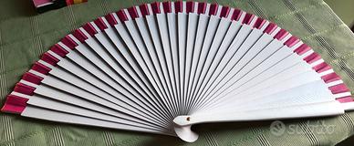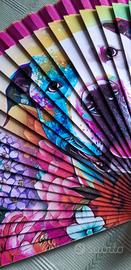 Ventaglio spagnolo in legno e tessuto dipinto a mano - dimensioni 40x20 cm. ca. Oggetto unico con colori vivacissimi e soggetto originale (cane razza bulldog).