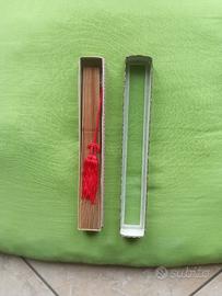 Ventaglio in legno naturale Cinese da borsa intagliato, con nappa rossa. Completa di custodia rigida con vetro.