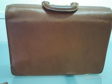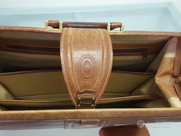 Vendo borsa da medico e agenda con anelli originali POLLINI ormai introvabili in pelle marrone. Sono vintage e ben tenuti, senza muffa e macchie e con angoli, manici leggermente usurati. La borsa presenta qualche scoloritura e micro graffio sulle parti metalliche dovuti all'età, poiché il modello dovrebbe risalire agli anni 90.