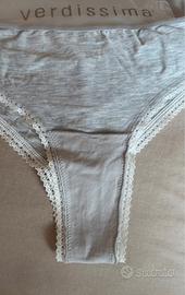Raffinata lingerie Verdissima tg IV morbidissimo modal stretch tassello 100% cotone confortevole delizioso grigio melange chiaro dettaglio in soffice pizzo punto vita cm 30-48x2 tirando ANCORA CONFEZIONATO/OTTIMA IDEAREGALO 💝🛍️🎁🎈🎄✨PAGATO 25€ IN CENTRO VIA DEL CORSO ROMA