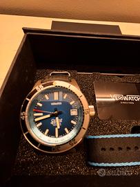 Viene riproposta la caratteristica cassa degli Skin Diver in voga negli Anni 60 e 70, periodo d’oro per gli orologi subacquei. Anche il quadrante, di chiara ispirazione vintage tipica di quegli anni, riprende il design del modello originale.