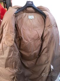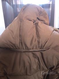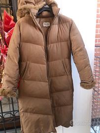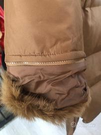 Vero piumino con cappuccio e polsini entrambi staccabili. Lunghezza dalla spalla al basso pari a 106 cm, manica 55 + pelo manica staccabile 7 cm, larghezza spalle 45 cm, da ascella ad ascella 50 cm. Taglia M. In ottime condizioni e adatto per clima freddo.