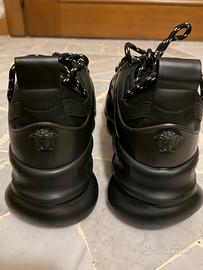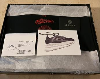 Vendo per inutilizzo splendide Versace Chain Reaction originali, mai messe ai piedi. Le scarpe sono in condizioni impeccabili, esattamente come visibili in foto. Punti di forza: • Autenticità Garantita: Le scarpe sono state verificate tramite Legit App. Insieme alle scarpe verrà inviato il certificato di autenticazione ufficiale per la massima trasparenza e sicurezza dell'acquirente. • Full Set: La vendita include tutto il corredo originale (Box originale, sacca antipolvere/dustbag e inserti). • Stato: Mai usate, suola intonsa (come da foto dei dettagli). Dettagli aggiuntivi: Le scarpe presentano l'iconica suola a catena e i dettagli greca e medusa tipici del brand. Un pezzo iconico di Versace pronto per essere indossato. Spedizione e Consegna: • Disponibile per spedizione rapida e tracciata oppure scambio a mano. • Imballaggio accurato per preservare l'integrità della scatola originale. • Massima serietà Prezzo poco trattabile date le condizioni e la certificazione inclusa.