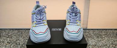 Versace Jeans Couture Sneakers 72VA3SC2 Bianco Prodotto 100% originale Con scatola originale USATE SOLO 4 VOLTE! PARI AL NUOVO in perfette condizioni come si vede in foto. Taglia: 38 Colore: Bianco Colore del produttore: ZP088 003 Sistema di chiusura: Lacci Tipo di punta: Arrotondata Tipo di tacco: Zeppa Larghezza della scarpa: Standard Altezza totale della scarpa: 13 cm Altezza tacco: 7 cm Soletta: Cuoio Interno: Tessuto Tomaia: Pelle - Pelle fiore Fodera: Dura Suola: Sintetico pregiato Contiene componenti non tessili di origine animale: Sì