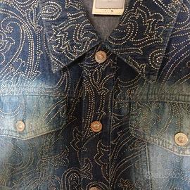 Giacchina Versace vintage in jeans effetto sbiadito con brillantini applicati,bottoni logati tenuto in ottime condizioni
