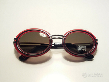 VERSACE OCCHIALE SOLE VINTAGE N.O.S. ORIGINALI 53/16 LARGHEZZA FRONTALE 138mm INUSATI ANNI 80 NON PIÙ PRODOTTI, METALLO GUNMETAL CERCHI ACETATO,ASTA MEDUSA ASTUCCIO A SACCHETTO GENERICI