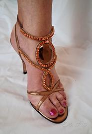 Sandalo Versace prima linea n. 38 ita, color bronzo con decorazioni in cristalli Swarovski, condizioni pari al nuovo ( indossati 1 volta ). Nessun difetto !!!
