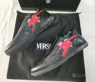 Versace Versus sneaker con patta x uomo pelle nera e rossa n. 45 complete ottime.