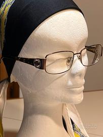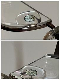 Versace vintage - occhiali da vista in metallo ramato con logo laterale circondato da brillantini-