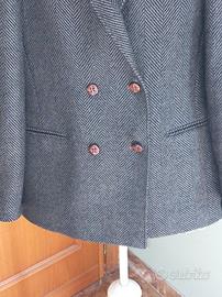 Giacca Blazer Tweed vintage marchio Versione, taglia 44 italiana; 100% pura lana vergine. Modello dritto doppiopetto, tasche sul davanti, chiusura con bottoni, fantasia spigato marrone e beige.